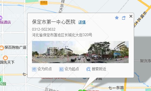 保定站220米向東步行 到 火車站東廣場10站乘 22路 (客運中心方向) 到 前衛(wèi)路小學(第一中心醫(yī)院)290米向東步行 到 保定市第一中心醫(yī)院