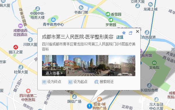 成都市第三人民醫(yī)院醫(yī)學(xué)整形美容科是在1941年經(jīng)過(guò)成都市衛(wèi)生部門(mén)同意建立的一所大型綜合性三甲醫(yī)院大醫(yī)院,經(jīng)過(guò)多年的發(fā)展,引進(jìn)了很多先進(jìn)的醫(yī)療設(shè)備以及優(yōu)質(zhì)手術(shù)材料,此外醫(yī)院還擁有著很多技術(shù)精湛的整形醫(yī)生,可以為球迷者提供全面優(yōu)質(zhì)的醫(yī)美整形服務(wù),所以在成都地區(qū)有著很好的口碑。