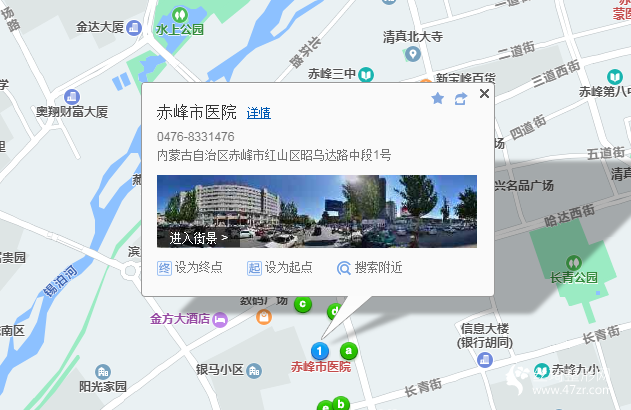 赤峰南站120米向西北步行 到 火車(chē)站6站乘 7路 (赤峰二中方向) 到 市醫(yī)院20米向西步行 到 赤峰市醫(yī)院