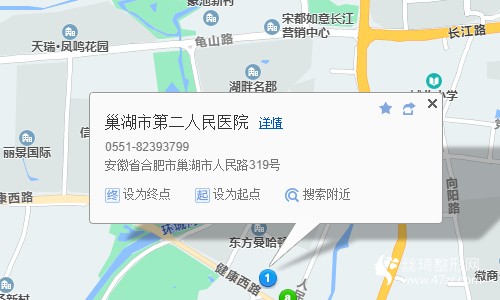 巢湖站70米向東南步行 到 火車站7站乘 巢湖19路 (云海鎂業(yè)方向) 到 合肥八院240米向東步行 到 巢湖市第二人民醫(yī)院