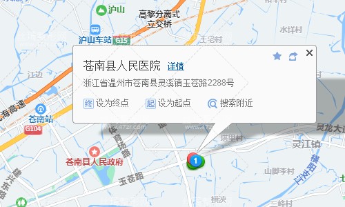 蒼南站140米向東北步行 到 交通局站9站乘 005路(蒼南) (金鄉(xiāng)車站方向) 或006路(蒼南) 到 新人民醫(yī)院站70米向西步行 到 蒼南縣人民醫(yī)院