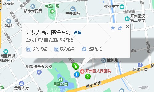 開州區(qū)中心客運站250米向西南步行 到 中心客運站7站乘 開州3路 (調(diào)節(jié)壩站方向) 到 南山百成路口站310米向西北步行 到 開縣人民醫(yī)院停車場。