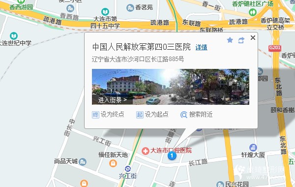 大連汽車客運總站150米向西北步行 到 北崗橋2站乘 2003路 (旅順汽車站方向) 或1101路沙崗子加車 1103路 1101路 到 興工街460米向東步行 到 403整形美容中心