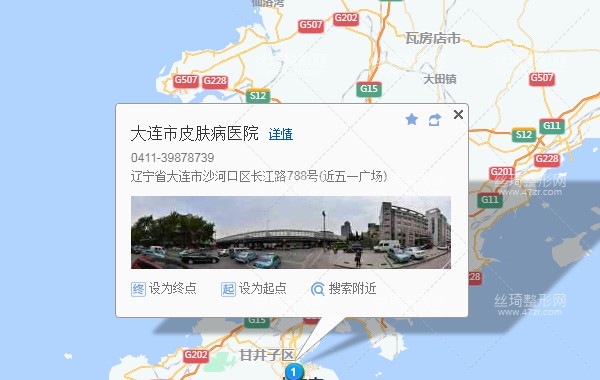 大連站260米向南步行 到 大連火車站3站乘 408路 (甘井子方向) 到 五一廣場250米向西步行 到 大連市皮膚病醫(yī)院