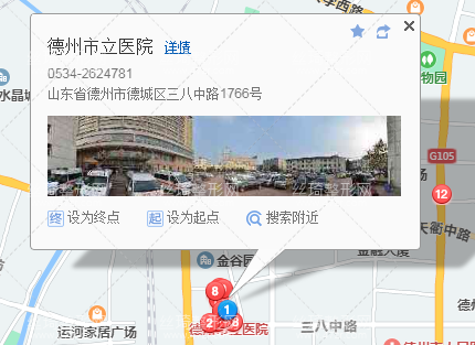 德州站270米向北步行 到 火車站公交換乘中心1站乘 23路 (第三店方向) 到 市立醫(yī)院140米向東步行 到 德州市立醫(yī)院。