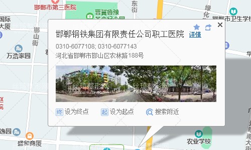 邯鄲汽車客運(yùn)總站180米向南步行 到 西客站5站乘 24路 (紫薇苑方向) 到 邯鄲鋼鐵集團(tuán)有限責(zé)任公司職工醫(yī)院燒傷整形科