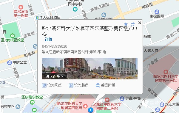 哈爾濱站320米向北步行 到 哈站北廣場霽虹街1站乘 64路 (匯龍北緯45度小區(qū)方向) 到 哈站650米向東步行 到 哈爾濱醫(yī)科大附屬第四醫(yī)院整形美容中心