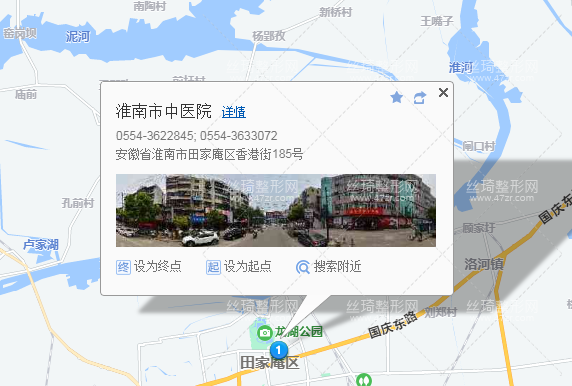 淮南站1.1公里向北步行 到 淮南世家珠寶城1站乘 121路 (田東方向) 到 田區(qū)政府830米向東北步行 到 淮南市中醫(yī)院整形美容專科