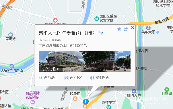 惠陽區(qū)430米向東北步行 到 第一城6站乘 666路 (雅居樂花園方向) 到 好宜多商貿(mào)廣場210米向北步行 到 惠陽人民醫(yī)院崇雅路門診部