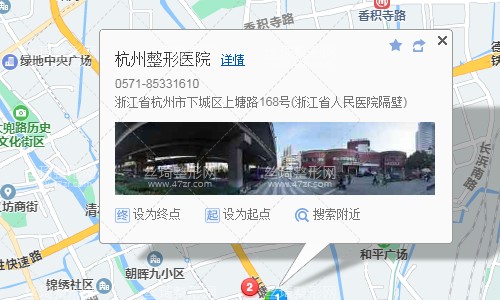 杭州汽車北站230米向南步行 到 汽車北站8站乘 153路 (武林小廣場方向) 或 67路76路 188路 到 米市巷440米向東步行 到 紅石板新村2站乘 86路 (景芳小區(qū)方向) 或 12路區(qū)間 101路 12路 到 朝暉八區(qū)南690米向東南步行 到 杭州整形醫(yī)院