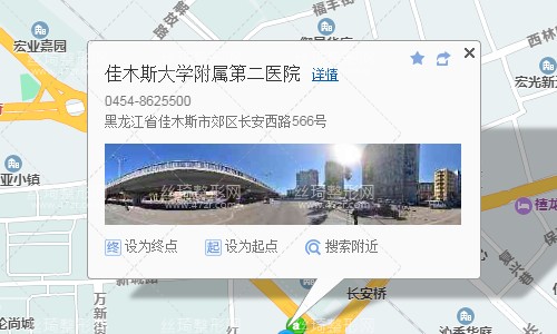 佳木斯火車站1.4公里向東北步行 到 二中3站乘 定制二中B線 (佳天國際方向) 到 長安新城220米向東北步行 到 佳木斯大學附屬第二醫(yī)院