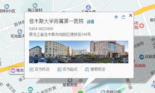 佳木斯市公路客運(yùn)總站110米向東北步行 到 佳運(yùn)集團(tuán)6站乘 23路 (政務(wù)服務(wù)中心方向) 到 婦幼保健院440米向南步行 到 佳木斯大學(xué)附屬第一醫(yī)院