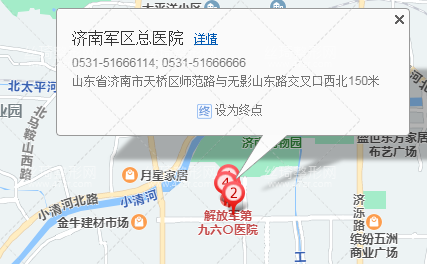 濟南站1.2公里向東北步行 到 東西丹鳳街濟濼路6站乘 K72路 (東宇花園方向) 到 解放軍第九六〇醫(yī)院50米向東步行 到 濟南軍區(qū)總醫(yī)院。