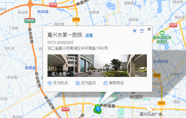 嘉善南站-出站口200米向北步行 到 高鐵南站11站乘 嘉善227路 (新星村(幸福河)方向) 到 信息技術(shù)學(xué)校5米站內(nèi)換乘 153路29站乘 153路 (嘉興汽車客運中心方向) 到 市第一醫(yī)院北530米向西南步行 到 嘉興市第一醫(yī)院