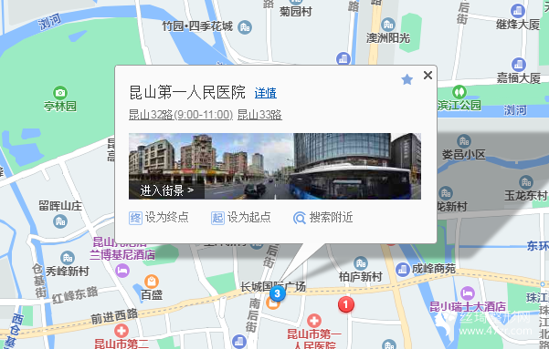 昆山站240米向東步行 到 葛江中學(xué)4站乘 昆山3路 (朝陽新村方向) 或 昆山31路 到 昆山賓館西440米向東步行 到 昆山市第一人民醫(yī)院