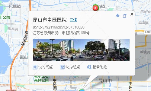 昆山南站650米向東南步行 到 中大柏廬天下6站乘 昆山33路 (柏廬公園方向) 或 昆山126路 到 中醫(yī)院30米向西南步行 到 昆山市中醫(yī)醫(yī)院