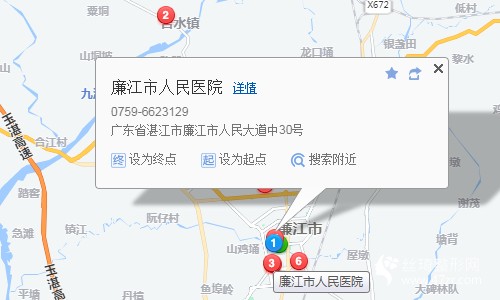 廉江汽車總站8米向南步行 到 汽車總站1站乘 廉江5路 (吉水圩方向) 到 中心市場910米向西步行 到 廉江市人民醫(yī)院