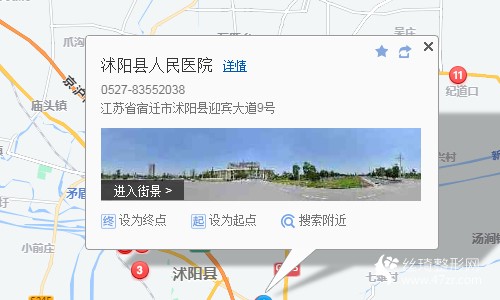 沭陽汽車客運東站170米向西北步行 到 東站(場外站)1站乘 沭陽16路 (西圩方向) 到 人民醫(yī)院140米向東步行 到 沭陽縣人民醫(yī)院