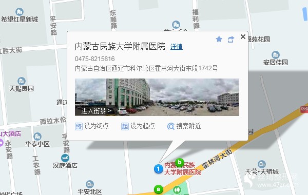 通遼站930米向北步行 到 圈樓6站乘 7路 (魏家方向) 到 附屬醫(yī)院50米向西北步行 到 內蒙古民族大學附屬醫(yī)院