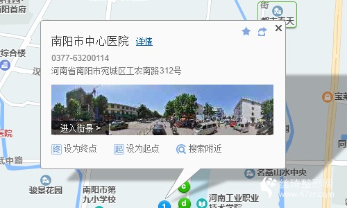 南陽汽車站410米向東北步行 到 火車站6站乘 30路 (杜詩路公交站方向) 到 建設(shè)路工農(nóng)路口西420米向東北步行 到 南陽市中心醫(yī)院