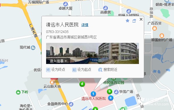 清遠北站220米向東北步行 到 城北客運站25站乘 107路 (市人民醫(yī)院方向) 或 303路 到 市人民醫(yī)院30米向西北步行 到 清遠市人民醫(yī)院
