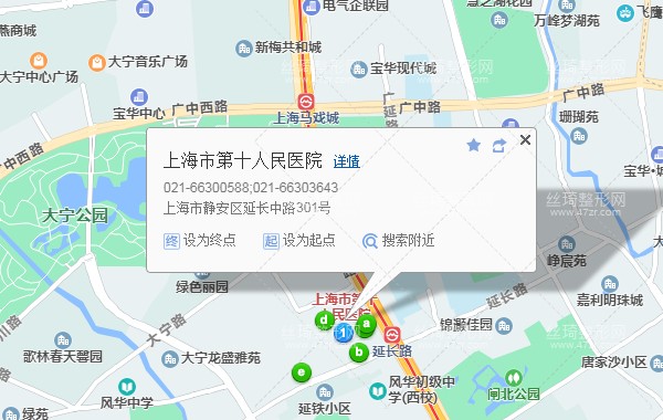 上海站120米向東南步行 到 上?;疖囌?2口 進站2站乘 地鐵1號線 (富錦路方向) 到 延長路 4口 出站210米向西南步行 到 上海市第十人民醫(yī)院