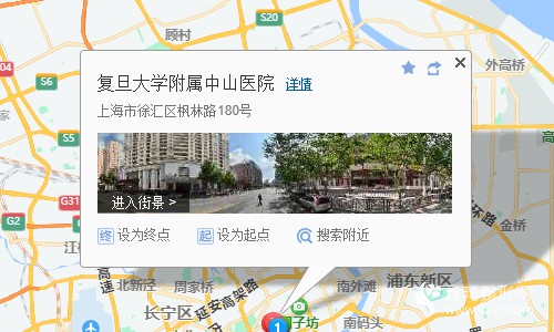 上?;疖囌?站乘 地鐵1號線 (莘莊方向) 到 陜西南路 1口 出站190米向東步行 到 陜西南路淮海中路3站乘 104路 (龍華方向) 到 小木橋路斜土路130米向西北步行 到 復(fù)旦大學(xué)附屬中山醫(yī)院