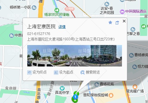 3、乘坐837路, 在武寧新村站下車;再換乘838路, 在大渡河路桃浦路站下車,步行350米即可到上海宏康醫(yī)院