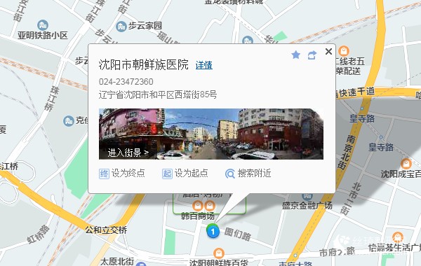 沈陽站180米向東步行 到 沈陽站北3站乘 263路 (西塔方向) 到 西塔340米向東北步行 到 沈陽市朝鮮族醫(yī)院