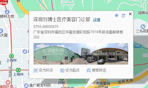 深圳北站110米向南步行 到 深圳北站 B口 進站2站乘 地鐵5號線(環(huán)中線) (黃貝嶺方向) 到 五和4站乘 地鐵10號線 (福田口岸方向) 到 孖嶺 A2口 出站730米向東南步行 到 深圳劉博士醫(yī)療美容門診部