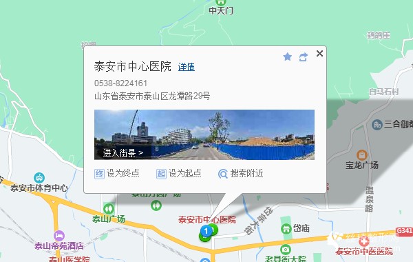 泰安汽車站210米向西北步行 到 泰安汽車總站3站乘 10路南環(huán) (泰山火車站廣場東站方向) 到 中心醫(yī)院250米向西步行 到 泰安市中心醫(yī)院