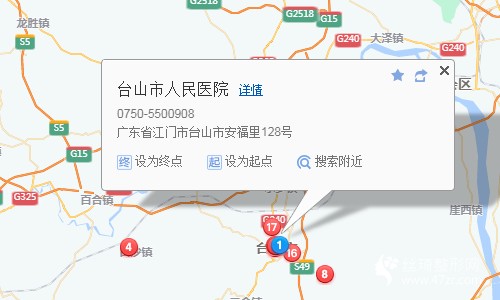 臺山汽車總站30米向東步行 到 臺山車站5站乘 806路 (臺山火車站方向) 到 少年宮260米向北步行 到 臺山市人民醫(yī)院