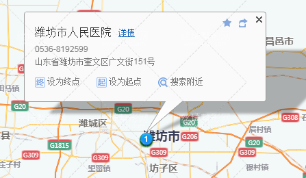 濰坊站350米向東步行 到 濰坊公路客運(yùn)總站2站乘 昌邑-高鐵北站 (昌邑汽車站方向) 到 濰坊人民醫(yī)院東門(mén)30米向北步行 到 濰坊市人民醫(yī)院