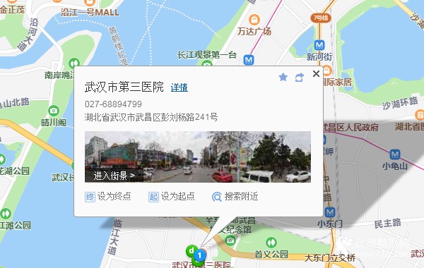 宏基汽車客運站360米向西步行 到 張之洞路千家街4站乘 571路 (硚口越秀財富中心方向) 或 706路 到 彭劉楊路260米向東步行 到 武漢市第三醫(yī)院