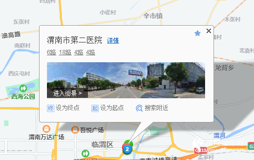 渭南站140米向北步行 到 渭南火車站8站乘 6路 (渭南北站方向) 到 渭南市第二醫(yī)院3米向東步行 到 渭南市第二醫(yī)院