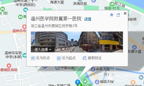 溫州南站330米向東北步行 到 BRT火車南站公交樞紐11站乘 B1路 (BRT火車溫州站公交樞紐方向) 到 BRT環(huán)城東路口160米向東步行 到 漲橋頭1站乘 102路 (市人民醫(yī)院婁橋院區(qū)首末站方向) 或 92路 51路 4路傍晚班 4路日班 到 華蓋山550米向南步行 到 溫州醫(yī)學(xué)院附屬第一醫(yī)院