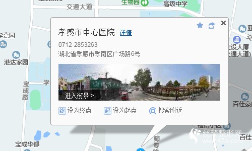 孝感站270米向西南步行 到 火車站5站乘 1路 (汪窯方向) 到 城站路文化路口2米站內(nèi)換乘 9路3站乘 9路 (后湖西路中心醫(yī)院方向) 到 后湖西路中心醫(yī)院20米向東步行 到 孝感市中心醫(yī)院