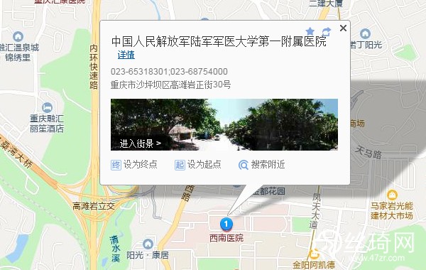 沙坪壩區(qū)汽車客運(yùn)站340米向南步行 到 漢渝路4站乘 464路 (回龍灣方向) 到 都市花園東路440米向東南步行 到 中國人民解放軍陸軍軍醫(yī)大學(xué)第一附屬醫(yī)院
