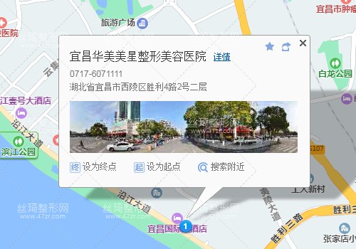 宜昌東站900米向西南步行 到 桔城路4站乘 805路 (宜昌長途汽車客運站方向) 或 806路 到 大公橋270米向西北步行 到 宜昌華美美星整形美容醫(yī)院