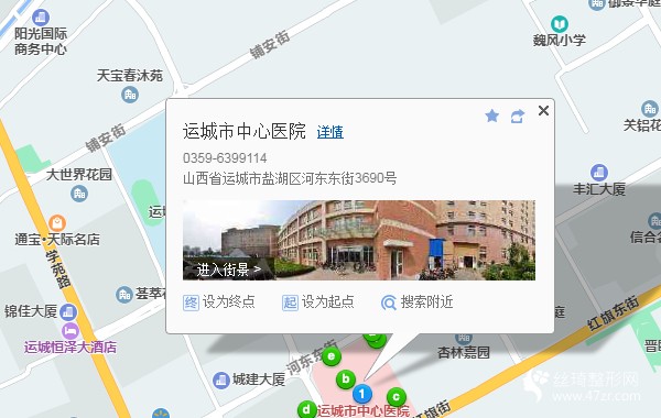 運城市中心醫(yī)院是在1947年經(jīng)過運城市衛(wèi)生部門同意建立的一所三甲綜合性醫(yī)院,該醫(yī)院有著較廣的占地面積,開設(shè)了很多的科室,其中整形科是醫(yī)院比較知名的科室之一,該科室醫(yī)療項目齊全,設(shè)備先進,在這里實施手術(shù)可以令自身安全和手術(shù)效果都得到一定的保障。