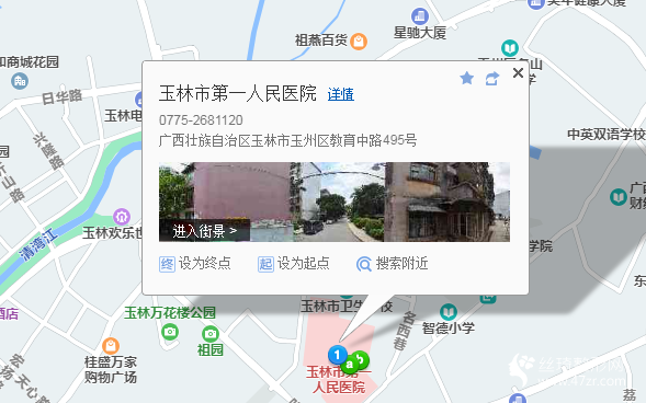 玉林汽車站110米向東北步行 到 汽車總站(二醫(yī)院)4站乘 3路 (紅十字會醫(yī)院方向) 或 11路到 市一醫(yī)院130米向西南步行 到 玉林市第一人民醫(yī)院