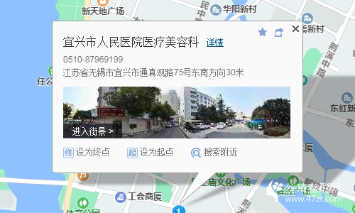 宜興站490米向西步行 到 高鐵站17站乘 宜興1路 (宜北公交場站方向) 到 沁園80米向西北步行 到 宜興市人民醫(yī)院醫(yī)療美容科