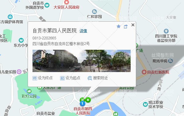 自貢站150米向西步行 到 火車站廣場1站乘 63路 (三多寨方向) 或70路 7路 到 火車站1.2公里向西南步行 到 自貢市第四人民醫(yī)院,