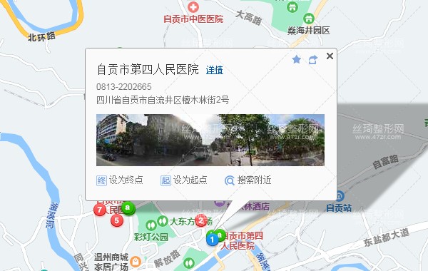 自貢站150米向西步行 到 火車站廣場1站乘 63路 (三多寨方向) 或70路 7路 到 火車站1.2公里向西南步行 到 自貢市第四人民醫(yī)院。