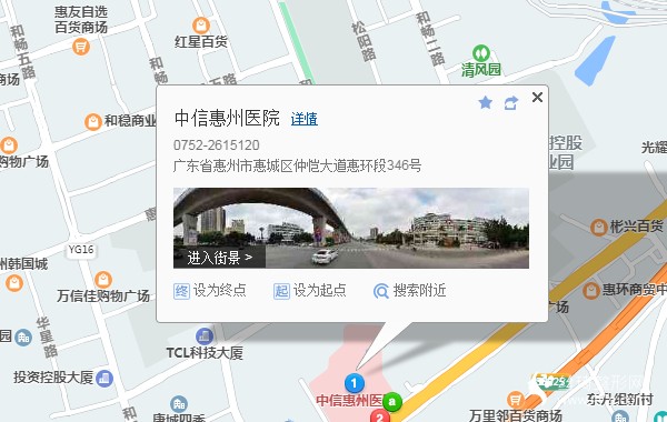 惠州站80米向西北步行 到 惠州火車北站10站乘 D1路 (惠東汽車客運總站方向) 到 合生大橋北19米站內(nèi)換乘 11路16站乘 11路 (潼僑公園方向) 或 208路到 中信惠州醫(yī)院130米向西北步行 到 中信惠州醫(yī)院整形美容醫(yī)院