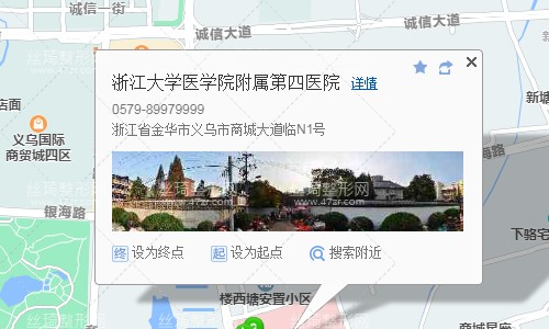 義烏站310米向西南步行 到 火車站12站乘 義烏B支線821路 (國際商貿城五區(qū)方向) 到 國際商貿城五區(qū)930米向東南步行 到 浙江大學醫(yī)學院附屬第四醫(yī)院