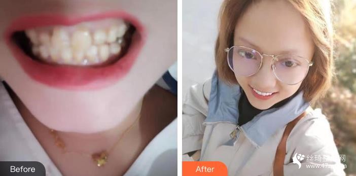 經(jīng)過(guò)再三詢問(wèn)尋找,終于把我的牙做了,這是剛做完的樣子,雖然白了,但是平時(shí)也得好好的刷牙,我做的這個(gè)是普通的,還有一種全瓷貼面,一顆牙3800~太貴了~表示真心是做不起啊。。不過(guò)這樣我也已經(jīng)很滿足了,較起碼涂口紅不用一張嘴一口大黃牙了,為了美~豁出去了。
