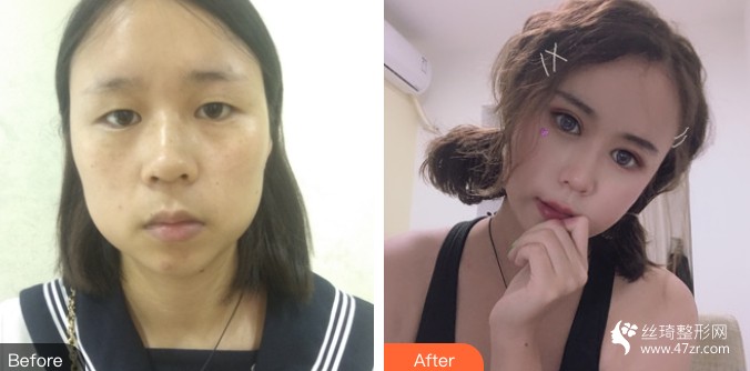 現在看起來雖然還是有點腫,但是已經不怎么明X了,前幾天腫得很嚇人,有朋友也在說我比她之前看到的都要腫,我當時也以為需要很久才能消腫,結果并沒有,拆線之后恢復很快的,我都有點驚呆了,感覺就是不知不覺間就恢復了,嘴唇也恢復很快,不過嘴唇我做的是不拆線的,也很快就消腫了,素顏看起要明X一點,現在化了妝所以看起腫得不明X了。 我覺得這個可能真的是與醫(yī)生的技術有關吧,這速度確實贊,以后就認準他們家了。