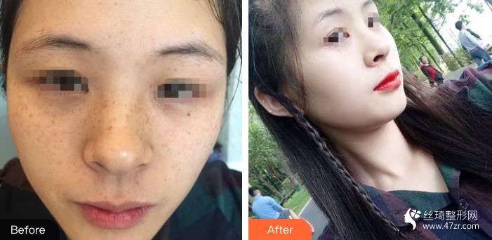 術(shù)后第一天,臉還是有些紅,只好買(mǎi)了個(gè)口罩戴著出門(mén),到下午的時(shí)候就好很多了,沒(méi)那么紅了。第二天早上起來(lái)照鏡子的時(shí)候發(fā)現(xiàn)臉上的斑少了起碼有一半,小點(diǎn)兒的斑基本上消了百分之七八十的樣子,但是顏色深一點(diǎn)的,大一點(diǎn)斑還在。醫(yī)生說(shuō)我的斑還需要再做一次才能去掉。為了給大家做參考,照片就不美顏了,看圖吧。