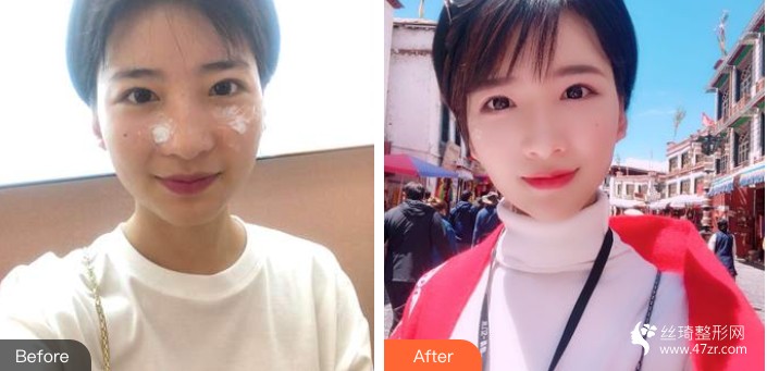 哪里也不想去,自拍更新一下哈哈。差不多是調(diào)節(jié)后第十天吧,現(xiàn)在已經(jīng)掉痂完畢可以正常上妝。當(dāng)天調(diào)節(jié)后麻藥過了,晚上睡覺和第二天的時候被調(diào)節(jié)了的兩個地方還有點痛,可能醫(yī)生打的有些重,我還挺害怕反黑的所以我沒有吃醬油,醫(yī)生說不能碰水,我也沒洗臉,但是說真的不洗臉好不舒服,實在忍不了就用化妝棉打濕擰干輕輕擦一些出油的地方,調(diào)節(jié)了的地方就不要碰到了。開心的是掉痂后都干干凈凈,也沒有印子。